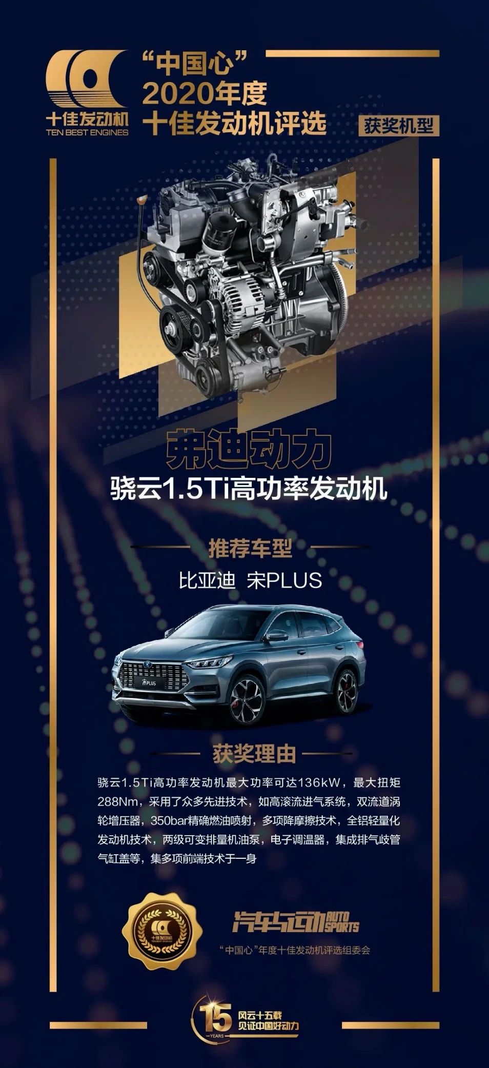 自9月上市以来,比亚迪宋PLUS先是被诸多媒体评为“同级最值得购买SUV”,后有上市当月即收获订单破万的成绩,称得上是捷报频传。近日,宋PLUS又有一大光环加身,其全系搭载的骁云全新1.5Ti高功率发动机荣登“中国心”2020年度十佳发动机榜单,出色品质再获权威认证。