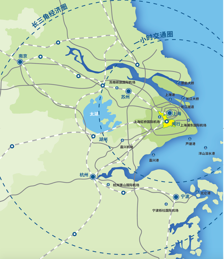 闵行作为上海重要区域一直以来就坐拥众多独特优势,作为虹桥商务区的重要组成部分,如今随着长三角一体化发展正式上升为国家战略,上海区域将迎来重大升级,而闵行也将以上海新晋主城的地位实现新的崛起。从地理位置上来看,闵行区地处上海的正中心,形似一把“钥匙”,区域面积372.56平方千米,是上海中心城区通往长三角的交通门户。
