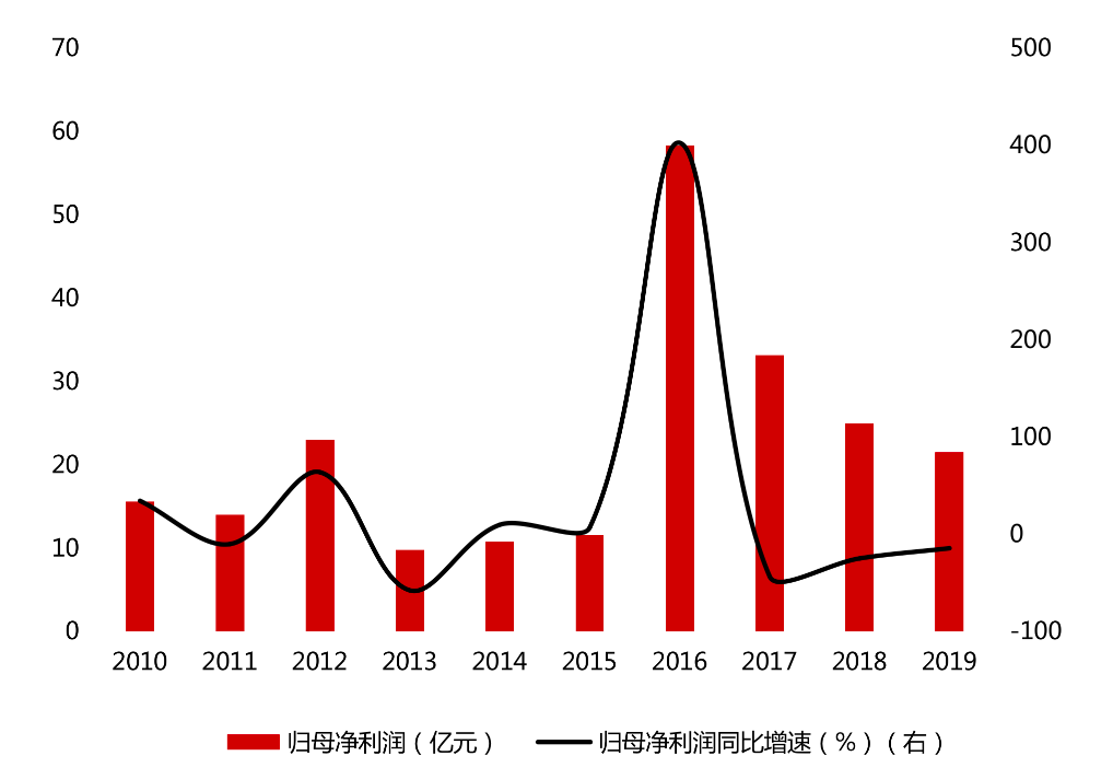 进一步分析,《投资时报》研究员注意到,该公司经营能力难言稳健。2010年—2019年,其归母净利润在上升与下降之间来回波动,归母净利润同比增速波动较大且有5年为负值,即便其2016年归母净利润同比增速曾高达403%,这也是建立在其基数较小的前提下。