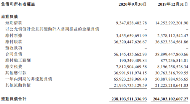 另外,值得注意的是,截至2020年9月30日,富力地产的短期借款为93.48亿元,较上年末减少34.41%;应付票据为34.36亿元,较上年末增加44.47%;合同负债为561.45亿元,较上年末增加44.33%;一年内到期的非流动负债为659.23亿元,较上年末增加29.55%。