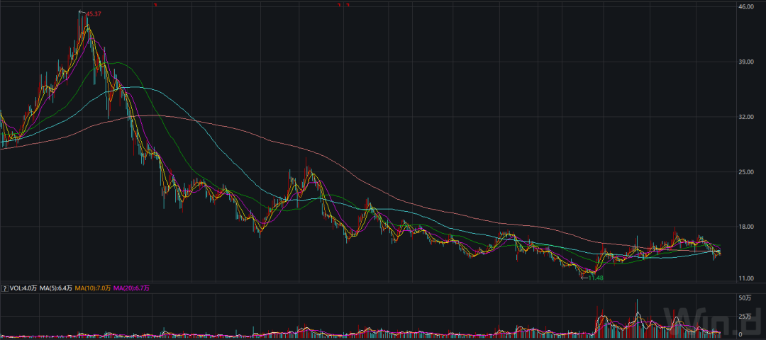 截至2020年12月14日,广誉远报收于15.54元/股,较近三年高点已下挫65%,总市值为76.46亿元。