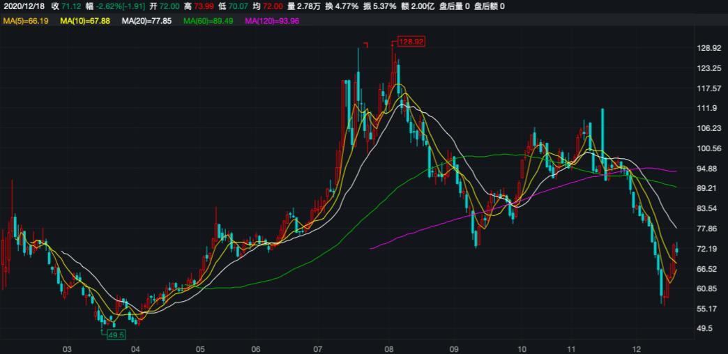 截至2020年12月18日,泽璟制药报收于71.12元/股,较前期高点已回落44.83%,市值170.69亿元。