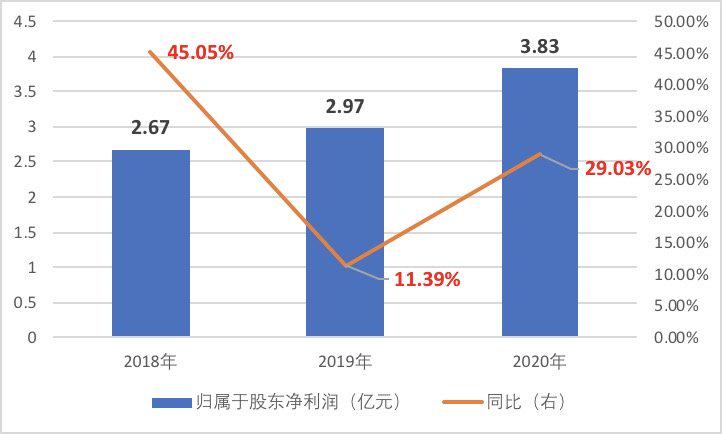 天味食品2018年—2020年归属于上市公司股东的净利润及增速情况