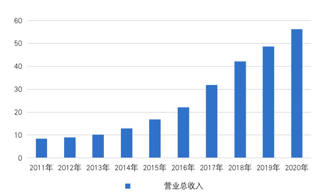 喜临门近十年营业收入情况(亿元)