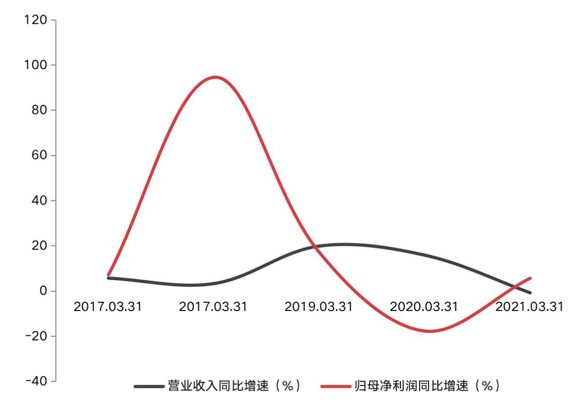 与此同时,该公司还披露了2021年第一季度业绩报告。数据显示,其业绩呈现出降收增利的态势,其中,营收为54.86亿元,同比减少0.7%;归母净利润为3.73亿元,同比增加5.73%。