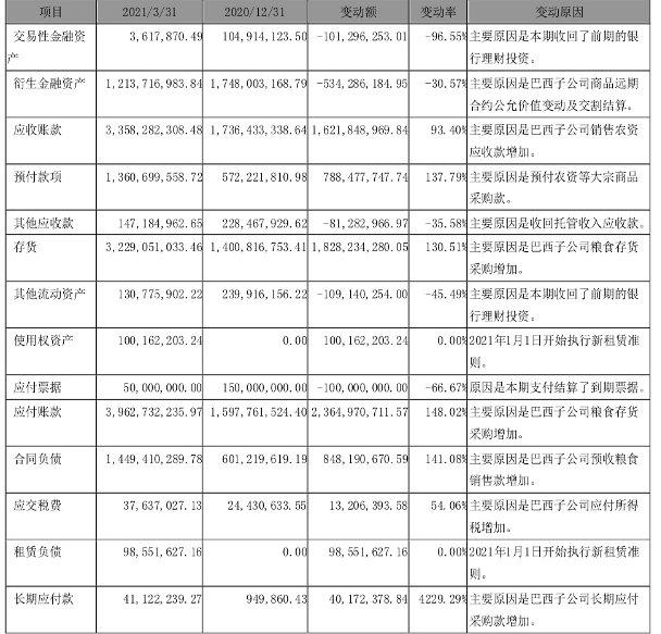 鹏都农牧2021年一季度资产负债表变动及原因