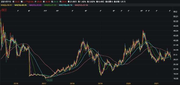 然而需要注意的是,2020年,乐普医疗的业绩增速曾出现大幅下滑。不知是否受此影响,该公司同时期在资本市场的表现也不尽人意,股价自2020年7月13日达到高点46.96元/股后便一路走低,虽然期间多次出现回升,但截至2021年7月13日下午收盘,每股仅报价30.2元,相较于此前高点每股仍缩水16.76元,并且已逼近该公司29元/股的发行价。