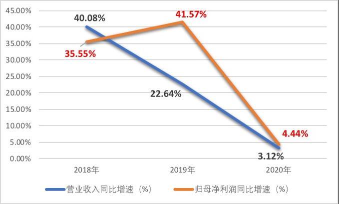 《投资时报》研究员进一步梳理该公司近年来财报注意到,进入2020年后,乐普医疗整体业绩增速大幅减缓。其中,全年营业收入仅同比增长3.12%至80.39亿元,较上年同期的22.64%同比增速减缓近20个百分点;而归母净利润同样仅增长到18.02亿元,4.44%的同比增速较上年同期更是骤减超30个百分点。