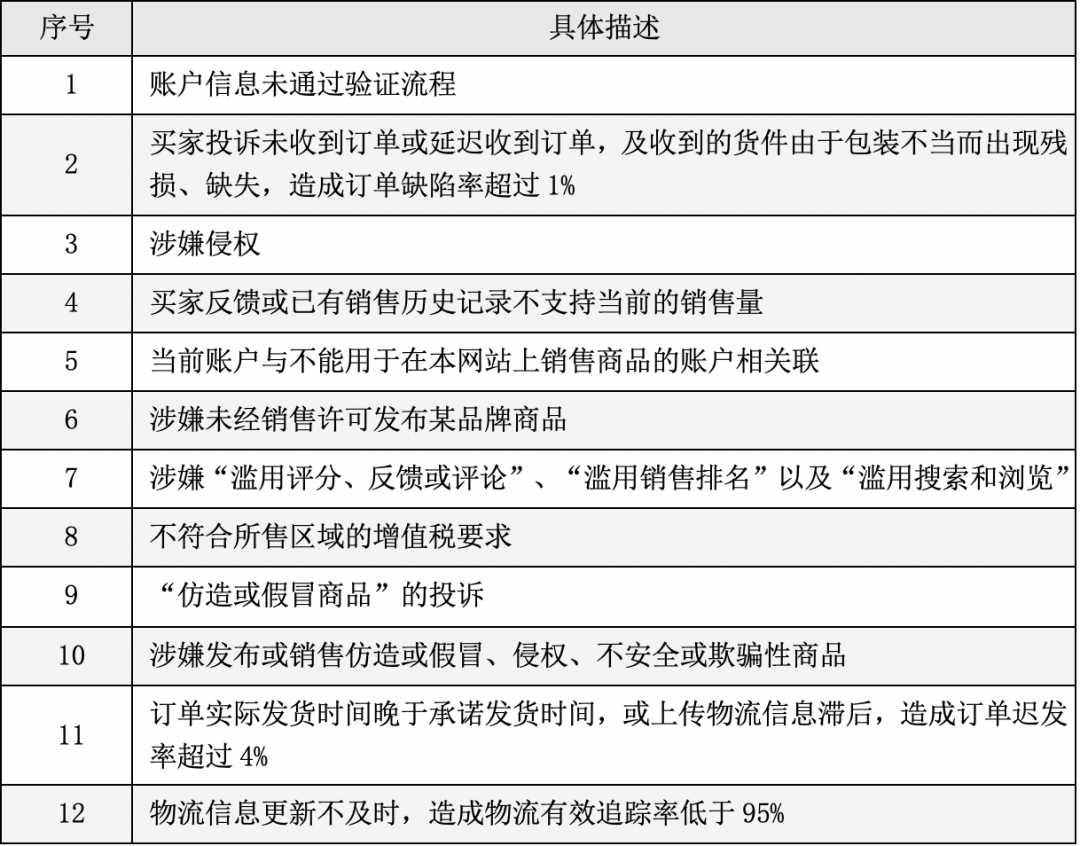 有棵树主要涉嫌违反12项亚马逊平台规则