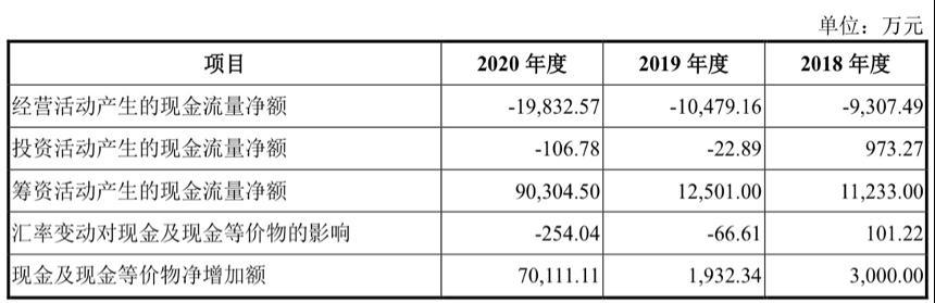 报告期内,该公司经营活动产生的现金流量净额分别为-0.93亿元、-1.05亿元和-1.98亿元。面对巨大的资金需求,索元生物主要通过股权融资的方式来解决资金问题。