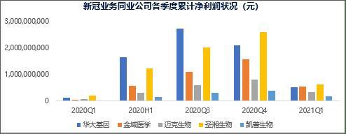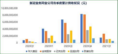 反观同行业其他企业的情况,2020年,受新型冠状病毒疫情持续性影响,医院相关科室限流,导致贝瑞基因医学检测类服务收入增速下降。2021年一季度业绩更是延续低迷,扣非净利润仅实现2076万元,同比减少66.02%;诺禾致源则主要依托高通量测序技术,结合其他基因检测方法,为科研机构、高校、医疗机构、药业等企事业单位提供基因检测和生物信息分析等研究服务;2020年扣非净利润仅实现2206万元,同比下降78.07%。