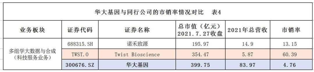 基因科技无疑是高科技属性的行业,截至7月27日收盘,A股专业技术服务业54家上市公司中静态加权平均市盈率31.25,科学研究和技术服务业70家上市公司中静态加权平均市盈率65.62。而华大基因19.12倍的市盈率竟然与航空运输业19.28相近。