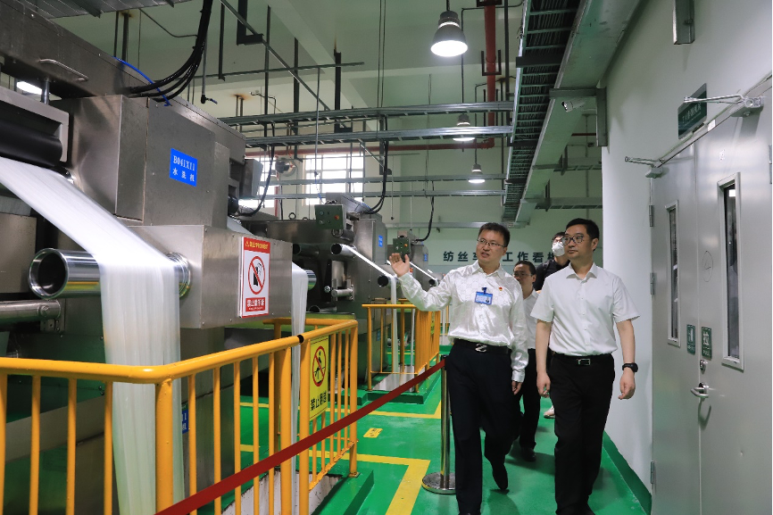 7月21日,湖北省副省长宁咏(右一)带队,实地调研奥园美谷金环绿纤项目建设发展情况。