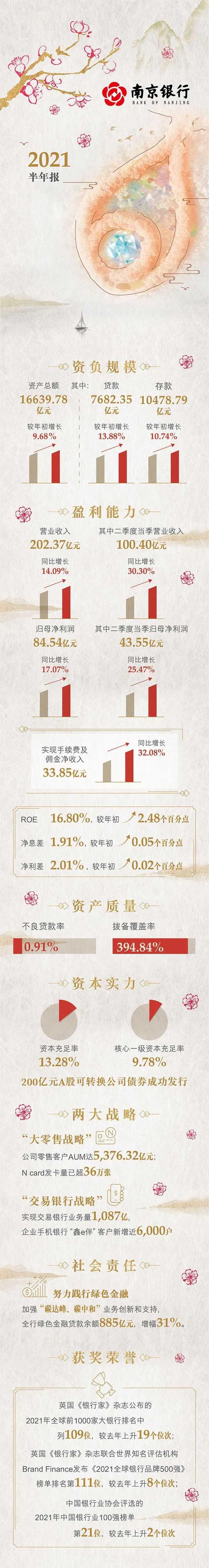 稳中有进、稳中加固,特别是2021年二季度,南京银行的经营业绩实现了强劲增长,经营活力不断释放,体现了该行一贯较高的发展韧性。