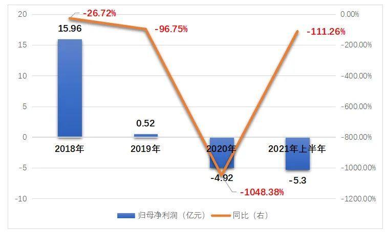 据披露,该公司2018年至2020年的营业收入分别为132.93亿元、81.33亿元和87.26亿元,两年时间总体下滑超40亿元。与此同时,该公司归母净利润则由2018年的15.96亿元降至2019年的0.52亿元,进而转盈为亏至2020年的-4.92亿元。