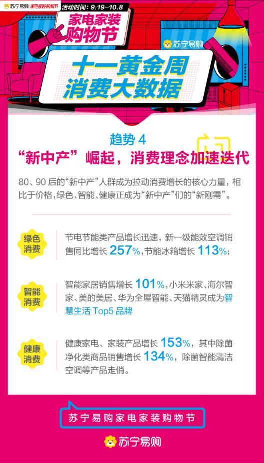 长假期间,80、90后“新中产”人群成为拉动消费增长的核心力量,绿色、智能、健康的消费方式正成为“新中产”的“新刚需”。