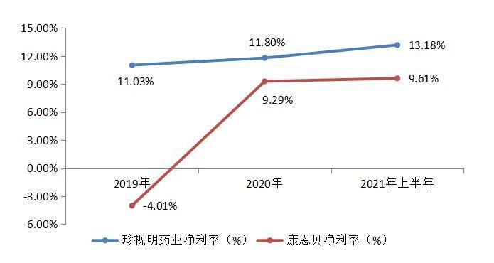 作为康恩贝重要控股子公司,珍视明药业盈利能力尚可。相关公告显示,2019年、2020年及2021年上半年,珍视明药业实现营收分别为5.10亿元、8.12亿元、5.16亿元,净利润为5625.73万元、9579.57万元、6799.32万元。两年及一期净利率约为11.03%、11.80%、13.18%,均高于康恩贝同期的-4.01%、9.29%、9.61%。