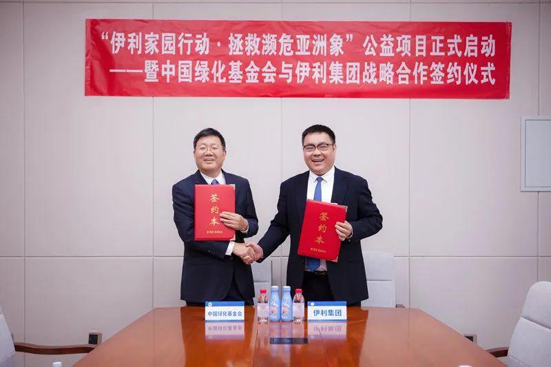 中国绿化基金会副主席兼秘书长陈蓬和伊利集团副总裁赵昕共同签署了合作协议