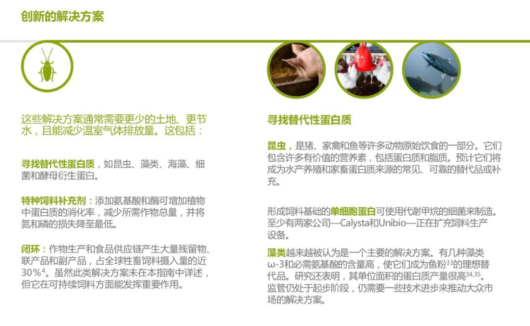 我们希望企业能采取行动,通过两个关键阶段开展可持续动物饲料生产工作,一是建立知识体系,通过与供应链进行关于动物饲料成分的研究和专业对话来实现;二是构建企业战略,通过设定饲料生产目标、制定技术创新、确定可持续发展合作伙伴来实现。