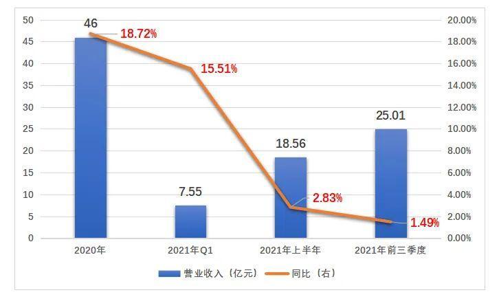 据公司近日发布的三季报数据披露,今年前三季度,丽人丽妆营业收入为25.01亿元,同比仅实现1.49%的增长,相较于2020年18.72%的同比增速缩水超17个百分点。其中,第三季度该公司的营收同比下滑2.15%至6.45亿元。