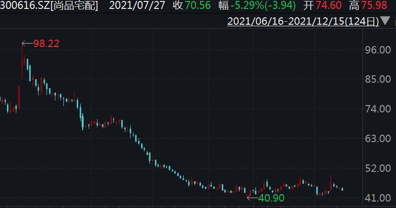 值得注意的是,自定增方案出炉,该公司股价一路下行,已由今年6月25日收盘价82.50元/股(不复权,下同),腰斩至12月21日的43.6元/股。