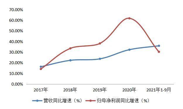 2017年至2020年,该公司营收由34.84亿元增至69.65亿元,同比增速为16.27%、22.25%、23.66%、32.25%;归母净利润则由2.02亿元增至6.04亿元,同比增速依次为14.11%、33.50%、38.14%、61.73%。数据来看,安井食品的业绩表现较为稳健。
