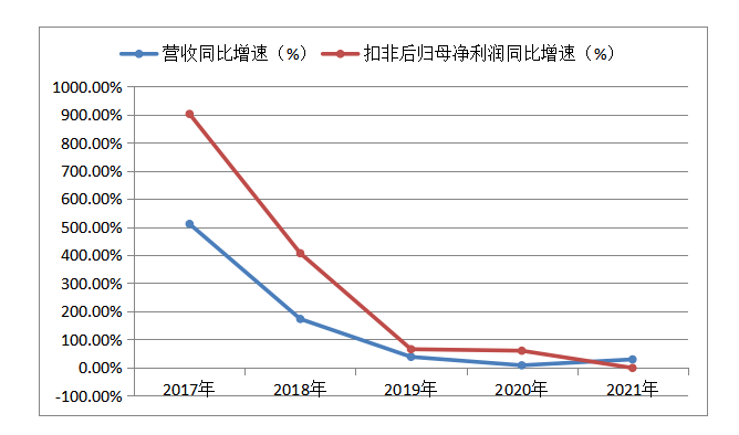 若拉长时间来该看,2017年至2020年,该公司营收同比增速为510.95%、172.72%、37.81%、7.74%,归母净利润同比增速为696.05%、359.11%、154.52%、74.92%,扣非后归母净利同比增速也由2017年的902.29%,一路放缓至2019年、2020年的65.11%、59.71%。五年下来,石头科技收入及利润增速大幅放缓。