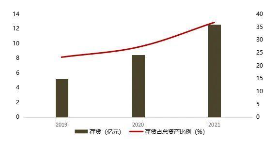 丽人丽妆2019年—2021年存货金额(左)及存货金额占总资产比例(右)
