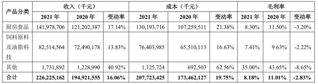 厨房食品业务毛利率下降3.2%