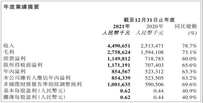 泡泡玛特2021年报显示,该公司全年实现总收入44.91亿元,增长78.7%;实现经营溢利11.50亿元,较上年的7.19亿元同比增长60.0%;实现公司拥有人应占年内溢利8.54亿元,同比增长63.2%。