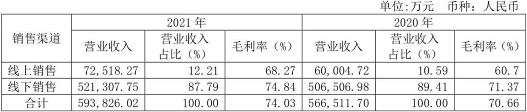 雅戈尔2020年、2021年线上、线下销售渠道的盈利情况