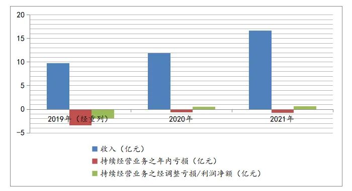 2019年至2021年,公司录得收益9.78亿元(经重列,即不包括非持续经营业务“美图美妆”和“智能手机”)、11.94亿元、16.66亿元;持续经营业务之年内亏损为3.44亿元、0.60亿元、0.77亿元;经调整利润净额则分别为-1.94亿元、0.49亿元、0.64亿元。