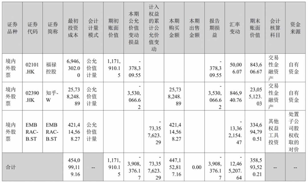 除了自身股价,完美世界证券资本投资表现也难言高光。数据披露,今年上半年,该公司交易性金融资产的公允价值变动损益为-359.94万元。具体来看,完美世界持有的两支股票,福禄控股(02101.HK)和知乎-W(02390.HK)报告期损益均为负值,合计为-390.84万元。在完美世界近年来披露的数据中,该公司所持有的福禄控股还曾于2020年出现过212.31万元的亏损。