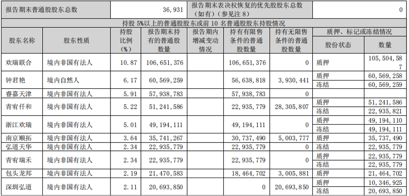 据2022年半年报显示,股东钟君艳所持的约6056.93万股已全部被司法冻结。