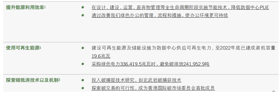 在废弃物管理方面,腾讯在2022年建成了绿色循环再利用中心,处理数据中心产生的电子废弃物,通过维修、改造、升级循环使用电子产品,在延长了电子产品生命周期、减少废弃物的同时减少了采购新设备的隐含碳排放。
