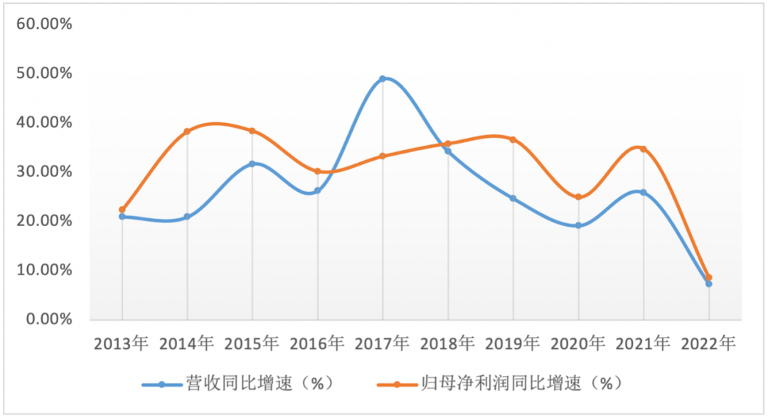 爱尔眼科业绩虽保持增长,但增速明显放缓。《投资时报》研究员注意到,该公司营收增速,是自2009年上市以来首次降至个位数;归母净利润增速则是第二次为个位数,上一次是2012年的6.18%。即便是在疫情发生的前两年即2020年、2021年,爱尔眼科的收入增速也还稳定在19%、26%;归母净利润增速则稳定在25%、35%。