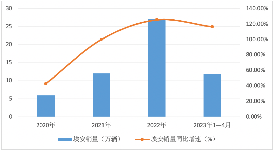 2022年,广汽埃安共计卖出27.12万辆汽车,实现营收387.03亿元,销量与收入均保持高增,但仍亏损。