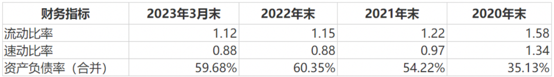 资产负债率方面,2020年至2022年及2023年一季度,亿纬锂能该指标分别为35.13%、54.22%、60.35%、59.68%,近两年来均在高位