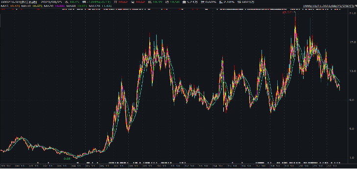 浙江医药上市以来的股价走势(元)