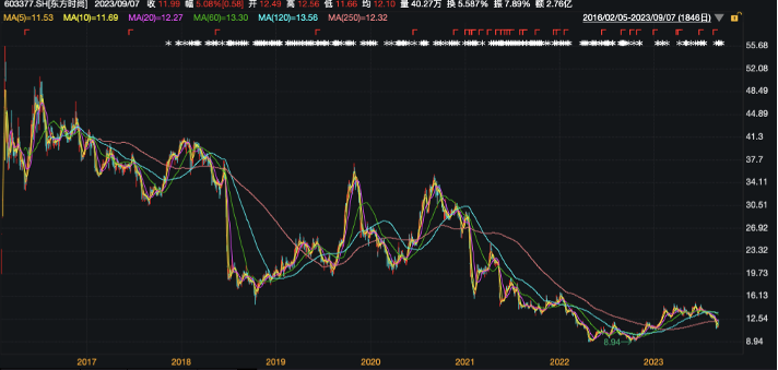 另外,东方时尚近几日的股价走势变化同样引得市场和投资者关注。9月6日,该公司接连收到来自上交所、北京证监局针对公司控股股东违规减持的罚单,次日,东方时尚股价则呈现出大幅拉升趋势,早间开盘不久便触及涨停。但之后公司股价小幅回落,截至当日收盘,该公司股价报收于11.99元/股,当日涨幅5.08%,为近期来新高。