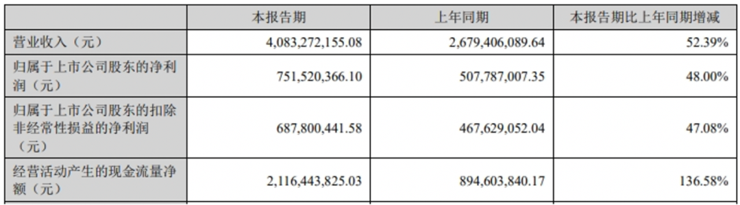 捷佳伟创是TOPCon和钙钛矿设备龙头,并在PERC、HJT、IBC等技术路线全面布局,公司主要产品包括湿法设备系列、真空设备系列、智能制造设备系列以及晶体硅电池整线解决方案等。受益于电池片厂商扩产、销售规模增加,公司2023年上半年实现营收40.83亿元,同比增长52.39%;归属于母公司股东的净利润为7.52亿元,同比增幅48.0%。