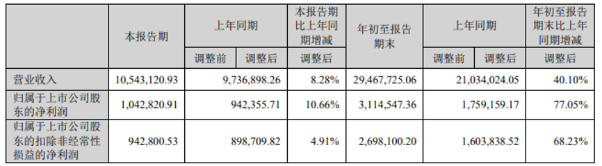 整体来看,该公司前三季度实现营收近3000亿元、归母净利润逾310亿元,同比增速为40.10%、77.05%,虽保持大增,但增速较此前两年同期明显放缓。