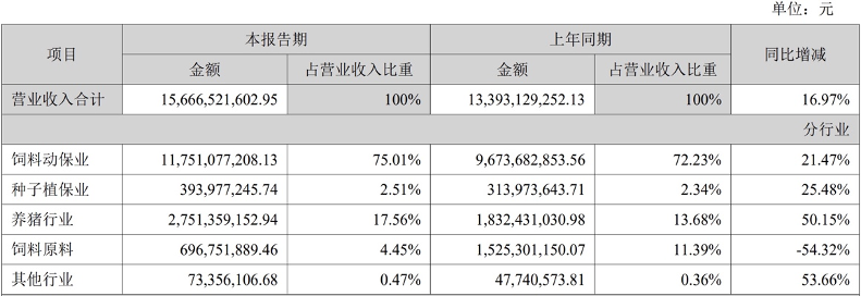 可以看到,在聚焦饲料动保业主业发展的同时,大北农还在不断挖掘新增长点,向种业、养殖业、饲料原料等领域发力。不过发展至今年上半年,饲料动保业依然是该公司主要收入来源,其收入占比仍达到七成以上,为75.01%;种子植保业、饲料原料、其他行业收入占比分别仅有2.51%、4.45%和0.47%。