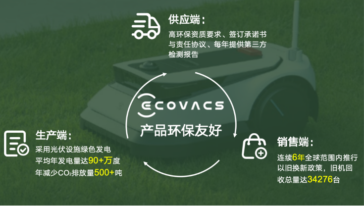 在绿色发展方面,科沃斯积极响应国家“碳中和”“碳达峰”战略号召,将节能减排贯彻落实到产品全生命周期,将绿色环保纳入企业的决策要素中,努力实现可持续发展。