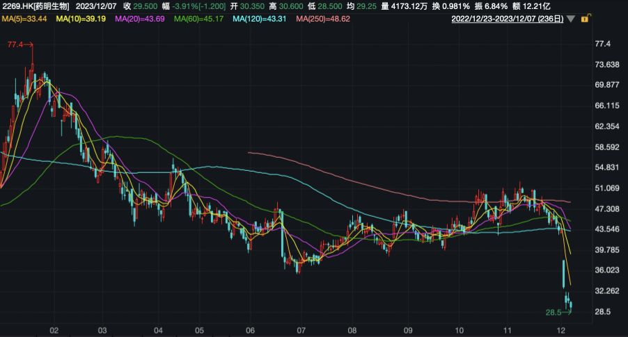 关注到此情况的药明生物于12月6日一早宣布拟回购最多4.248亿股股份,这一举动暂时止住了公司股价下跌势头。