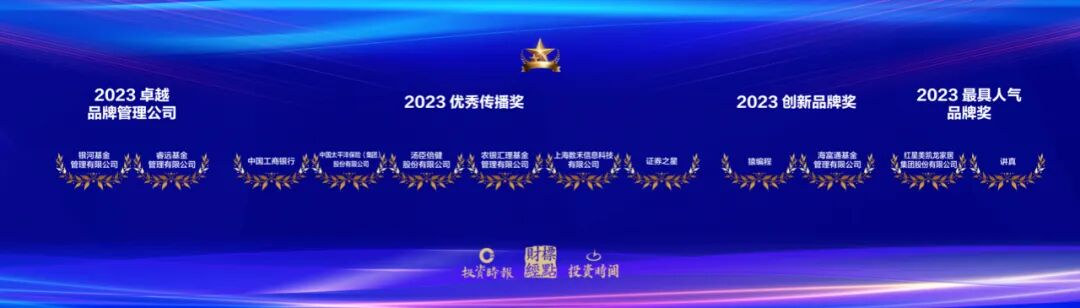 本次高峰论坛上,《投资时报》携手标点财经研究院、投资时间网联合揭晓了“2023年度金禧奖”获奖名单。经过激烈的竞争与遴选,一批引领行业未来趋势、敢于突破和创新、经营业绩出色并对社会有突出贡献的企业及个人脱颖而出,获得了褒奖。