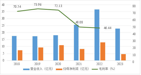 2023年,澜起科技实现营收22.86亿元,较上年同期下降37.76%;归母净利润为4.51亿元,同比下降65.30%
