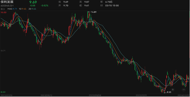 3月11日,保利发展在投资者互动平台表示,未来,公司将继续以良好的经营业绩促进估值提升,同时将进一步提高信息披露水平、加强投资者沟通管理,积极传递公司投资价值,提高股东回报。但就目前情况来看,回购与增持未能拉高保利发展的股价。截至3月15日收盘,该公司股价报于9.69元/股,总市值为1160亿元。