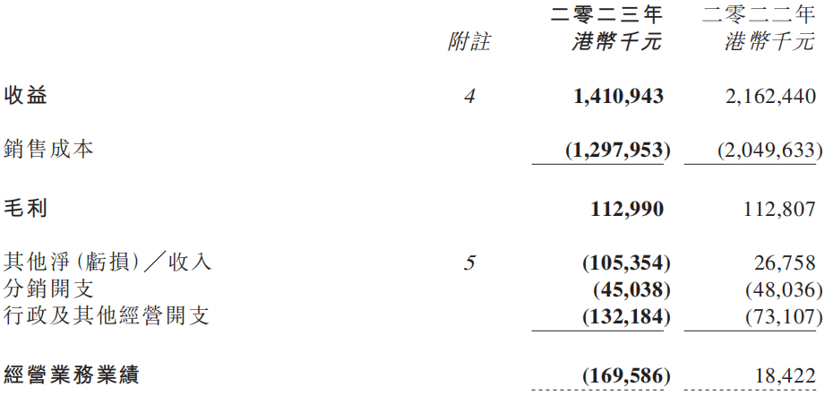 雨润食品经营费用包括分销开支和行政及其他经营开支。2023年,该公司的经营费用为1.77亿港元,在营收中占比12.6%;2022年的经营费用为1.21亿港元,占比仅为5.6%。