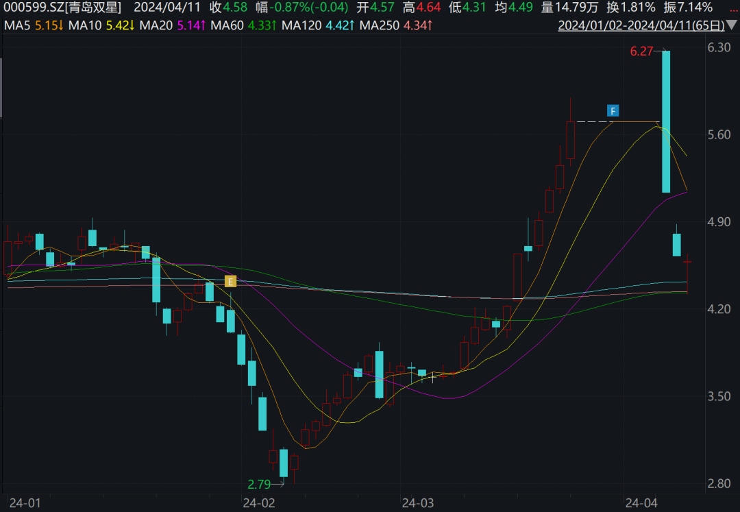 从二级市场表现来看,资本市场投资者对相关事项多空分歧较大。4月9日,青岛双星复牌首日股价剧烈波动上演“天地板”。当日开盘价为5.70元/股,先是涨停至6.27元/股后,又快速下跌至跌停价5.13元/股,一天振幅达20%。4月10日该股继续下跌,当日收于4.62元/股,日跌幅达9.94%。